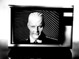 Max Headroom returned in 2007 on BBC Channel 4. He first appeared as a Channel 4 music video cyberpunk show host in 1984 in The Max Talking Headroom Show. The human character wears latex and foam rubber prosthetics and a fibreglass suit. See article. and here on the Roswell hoax.